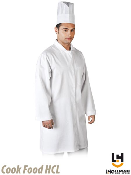 Fartuch ochronny męski.- tkanina: 65% poliester, 35% bawełna- gramatura 200 g/m2- zapinany na zatrzaski- wykończony kołnierzykiem- kieszeń wewnętrzna z lewej strony- przystosowany do pracy w systemie HACCP (przemysł spożywczy)- odpowiedni do prania przemysłowego (maksymalna temperatura 95°C)