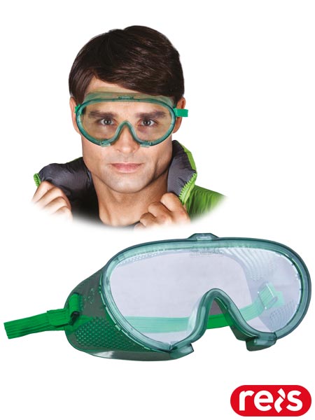 Gogle ochronne.- klasa optyczna 1- szybka wykonana z poliwęglanu- na bokach małe dotwory, zapobiegające parowaniu- zakładane na elastyczną gumkę, dzięki czemu doskonale się dopasowują- wyposażone w elastyczny nosek dla większego komfortu- chronią przed małymi odpryskami ciał stałych o energii uderzeń do 120 m/s (B)- spełniają wymagania normy EN166