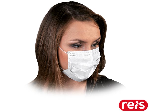 Maseczka higieniczna trójwarstwowa z polipropylenu.- zakładana na dwie gumki zamocowane na bokach- metalowa klamra na wysokości nosa- pakowana po 10 szt. w opakowaniu- maseczka higieniczna służy przestrzeganiu czystości poprzez zapobieganie przedostaniu się wydzieliny z ust i nosa do środowiska oraz utrudnienie przeniesienia zabrudzeń z dłoni na twarz- produkt nie stanowi środka ochrony układu oddechowego ani wyrobu medycznego
