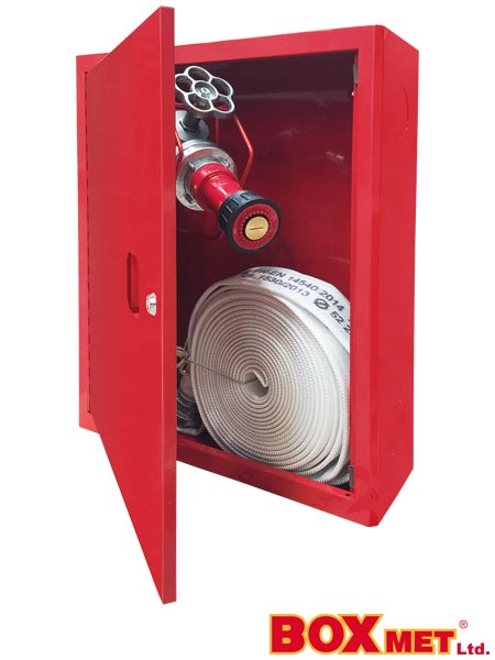 Hydrant wewnętrzny zawieszany z wężem płasko składanym.- długościach węża 20 m- wykonany z czarnej blachy stalowej pokrytej farbą proszkową- wyposażony w : zwijadło z wężem płasko składanym DN52 o długości 20m, kosz pręt okrągły gładki o6mm pokryty farbą proszkową, regulowaną prądownice DN52 z dyszą równoważną o12 mm, oraz zawór grzybkowy aluminiowy DN25 z nasadą aluminiową- możliwość lewego i prawego doprowadzenia wody- zamek patentowy z systemem „zbij szybkę”- pełne drzwi z możliwością przełożenia na druga stronę- wymiary szafki: 600x480x180.- w zestawie umieszczona dokumentacja : znak bezpieczeństwa „ Hydrant wewnętrzny” , instrukcja obsługi, instrukcja montażu, tabliczka znamionowa, oraz deklaracja zgodności producenta z kartą gwarancyjną- spełnia wymagania normy EN671-2