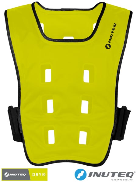 Kamizelka chłodząca INUTEQ-DRY®.- strona zewnętrzna INUTEQ-DRY® (50% nylon typu jersey oraz 50% PU), MICROBAN® formuła antybakteryjna- strona wewnętrzna INUTEQ-DRY® nylon- wnętrze wyposażone w chłonną poliestrową wkładkę w technologii INUTEQ-DRY®- dzięki suchej technologii chłodzenia, kamizelka pozostaje sucha a chłodzenie rozpoczyna się od razu- chłodzenie redukuje stres cieplny i zmęczenie poprawiając wydajność w pracy- najlepiej sprawdza się w środowiskach o niskiej i średniej wilgotności gdzie łatwo o przepływ powietrza- lekka, wygodna i elegancka- aktywacja odbywa się poprzez wlanie wody do kamizelki (maks. 500 ml)