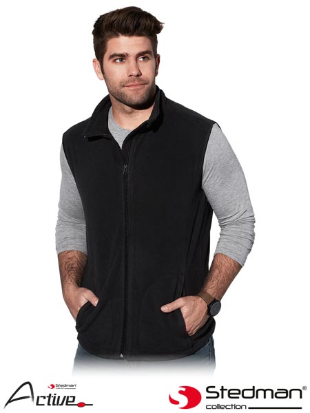 Bezrękawnik męski ST5010.- tkanina microfleece 100% poliester z powłoką antypillingową- gramatura 220 g/m2- zapinany na suwak- szwy po bokach- dwie boczne kieszenie- dół kamizelki ściągany gumką- kołnierz w formie stójki
