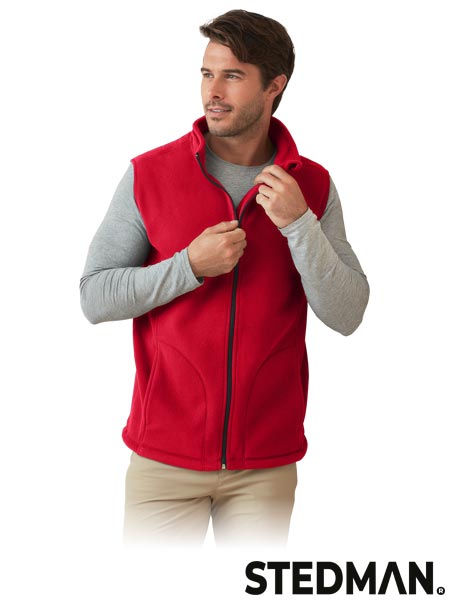 Bezrękawnik męski ST5010.- tkanina microfleece 100% poliester z powłoką antypillingową- gramatura 220 g/m2- zapinany na suwak- szwy po bokach- dwie boczne kieszenie- dół kamizelki ściągany gumką- kołnierz w formie stójki