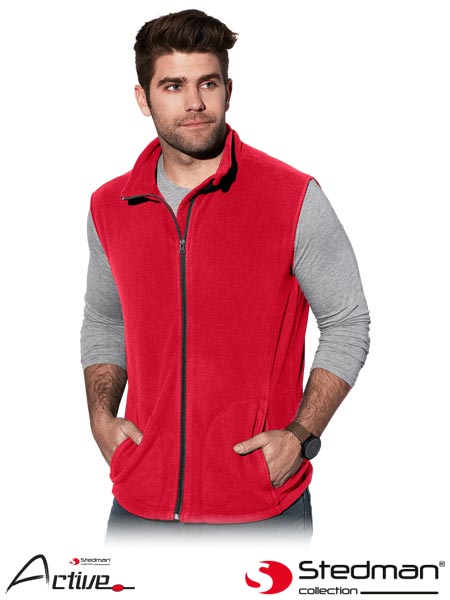 Bezrękawnik męski ST5010.- tkanina microfleece 100% poliester z powłoką antypillingową- gramatura 220 g/m2- zapinany na suwak- szwy po bokach- dwie boczne kieszenie- dół kamizelki ściągany gumką- kołnierz w formie stójki