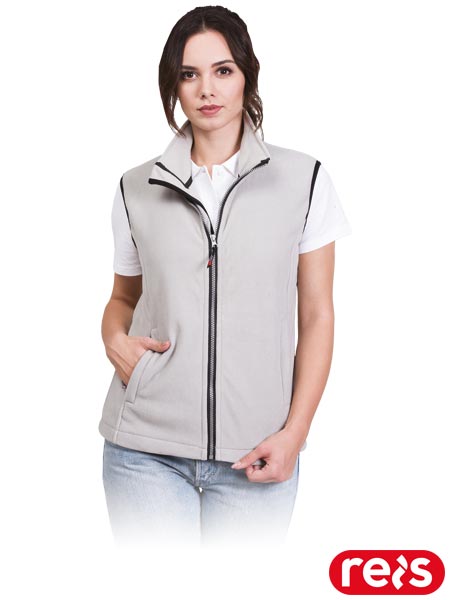 Bezrękawnik ochronny, damski.- dzianina polarowa: 100% poliester- gramatura 280 g/m2- zapinany na zamek błyskawiczny- kołnierz w formie stójki- dwie kieszenie w dolnej części zapinane na suwak- uniwersalny wygląd sprawia, że znajduje on zastosowanie zarówno w pracy jak i w życiu codziennym- fason: REGULAR