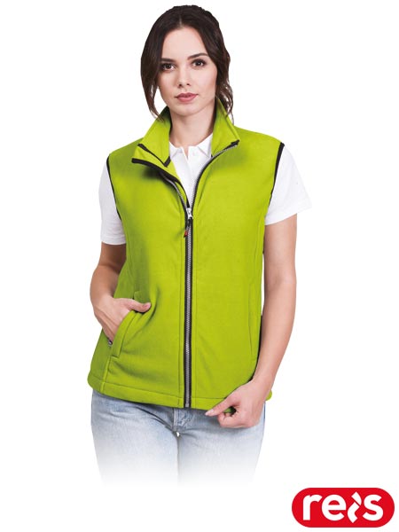 Bezrękawnik ochronny, damski.- dzianina polarowa: 100% poliester- gramatura 280 g/m2- zapinany na zamek błyskawiczny- kołnierz w formie stójki- dwie kieszenie w dolnej części zapinane na suwak- uniwersalny wygląd sprawia, że znajduje on zastosowanie zarówno w pracy jak i w życiu codziennym