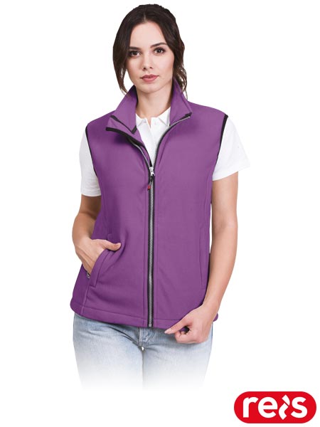 Bezrękawnik ochronny, damski.- dzianina polarowa: 100% poliester- gramatura 280 g/m2- zapinany na zamek błyskawiczny- kołnierz w formie stójki- dwie kieszenie w dolnej części zapinane na suwak- uniwersalny wygląd sprawia, że znajduje on zastosowanie zarówno w pracy jak i w życiu codziennym- fason: REGULAR