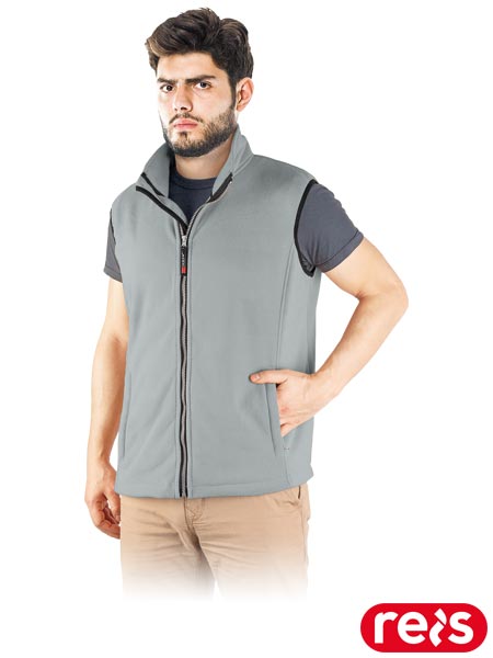 Bezrękawnik ochronny, męski.- dzianina polarowa: 100% poliester- gramatura 280 g/m2- zapinany na zamek błyskawiczny- kołnierz w formie stójki- dwie kieszenie w dolnej części zapinane na suwak- uniwersalny wygląd sprawia, że znajduje on zastosowanie zarówno w pracy jak i w życiu codziennym