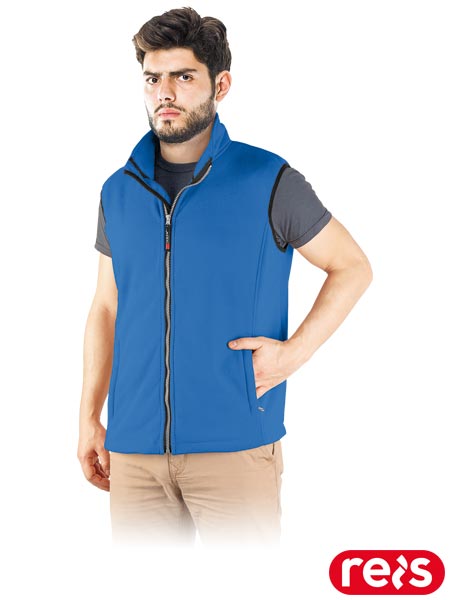 Bezrękawnik ochronny, męski.- dzianina polarowa: 100% poliester- gramatura 280 g/m2- zapinany na zamek błyskawiczny- kołnierz w formie stójki- dwie kieszenie w dolnej części zapinane na suwak- uniwersalny wygląd sprawia, że znajduje on zastosowanie zarówno w pracy jak i w życiu codziennym