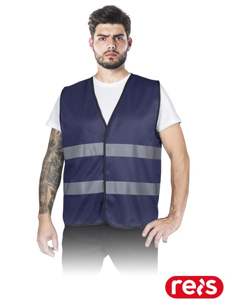 Kamizelka ostrzegawcza, męska.- dzianina: 100% poliester- gramatura 120 g/m2- zapinana na rzep- dwa poziome pasy odblaskowe zwiększające widoczność- zapewnia bezpieczeństwo w ruchu ulicznym- fason: REGULAR