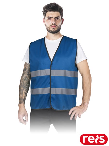 Kamizelka ostrzegawcza, męska.- dzianina: 100% poliester- gramatura 120 g/m2- zapinana na rzep- dwa poziome pasy odblaskowe zwiększające widoczność- zapewnia bezpieczeństwo w ruchu ulicznym- fason: REGULAR