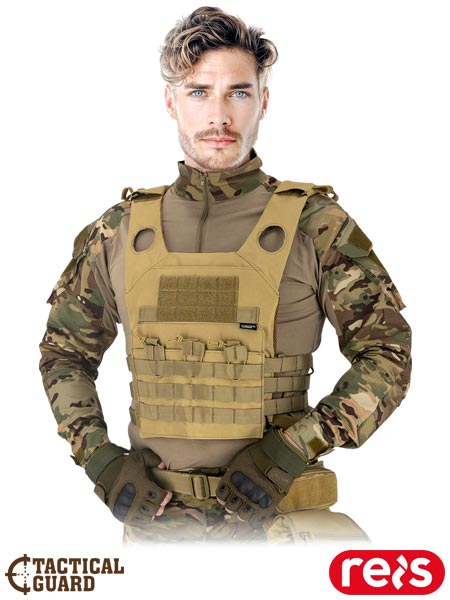 Kamizelka taktyczna Tactical Guard.- tkanina 600D Oxford: 100% poliester z powleczeniem PCV od wewnątrz- wymiary: 35x20x45 cm- w zestawie dwa panele (przedni i tylny) zapinane na rzep z wkładami z pianki polietylenowej (EPE) oraz pasy boczne- ramiona kamizelki regulowane na rzep- dwie kieszenie zapinane na rzep- panel rzepowy (velcro) umożliwiający przymocowanie naszywek oraz emblematów- pętelki umożliwiające doczepienie dodatkowych akcesoriów- dedykowany dla miłośników militariów, motocyklistów, motorowerzystów, podróżników, fanów paintballu- sprawdzi się podczas treningów i symulacji bojowych, paintballu, wypraw outdoorowych i survivalowych
