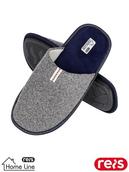 Kapcie męskie.- tkana cholewka 98% poliester, 2% elastan- dziana podszewka nylex 100% poliester- tkana wkładka z krótkiego pluszu 100% poliester- podeszwa wykonana z TPR- wsuwane- lekkie i wygodne, zapewniają wysoki komfort użytkowania- sprawdzą się jako kapcie dla gości w domu bądź w hotelu