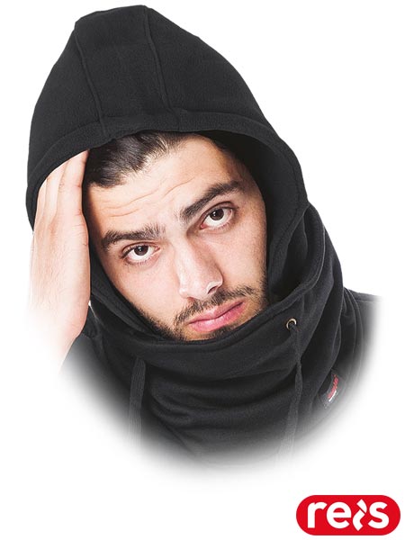 Kaptur ochronny z kołnierzem.- dzianina polarowa: 100% poliester- waga sztuki około 230 g- wymiary: rozmiar L na płasko 25,5 cm, po rozciągnięciu 29 cm; rozmiar XL na płasko 26 cm, po rozciągnięciu 30 cm- kaptur ściągany sznureczkiem- chroni głowę i szyję użytkownika przed wiatrem i chłodem
