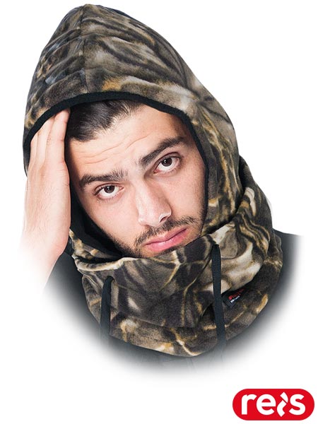 Kaptur ochronny z kołnierzem.- dzianina polarowa: 100% poliester- waga sztuki około 230 g- wymiary: rozmiar L na płasko 25,5 cm, po rozciągnięciu 29 cm; rozmiar XL na płasko 26 cm, po rozciągnięciu 30 cm- kaptur ściągany sznureczkiem- chroni głowę i szyję użytkownika przed wiatrem i chłodem