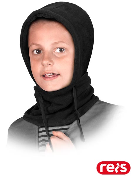 Kaptur z kołnierzem.- dzianina polarowa: 100% poliester- kaptur ściągany sznureczkiem- chroni głowę i szyję użytkownika przed wiatrem i chłodem
