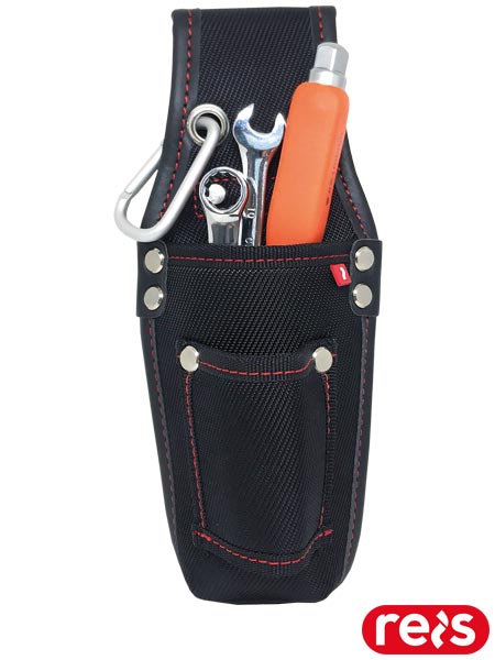 Kieszeń na narzędzia.- wykonana z poliestru- dodatkowo wzmocniona nitami- dwie kieszenie na narzędzia- zakładana na pasek, dodatkowo metalowy uchwyt- idealna dla monterów