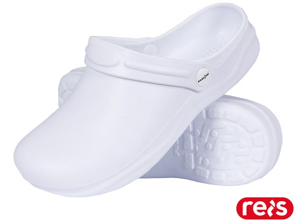Klapki LAB.- wykonane z tworzywa EVA- wsuwane, z paskiem dwufunkcyjnym przekładanym na piętę- wyprofilowana podeszwa zapewniająca komfort użytkowania i zabezpieczająca przed ześlizgnięciem się stopy- łatwe w utrzymaniu czystości- idealne do stosowania w laboratoriach, aptekach