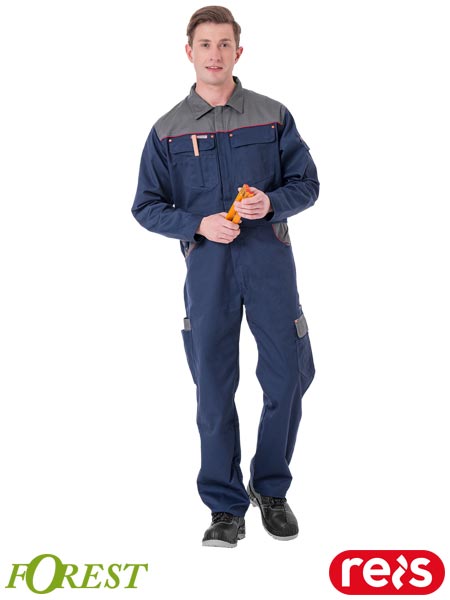 Kombinezon ochronny FOREST, wykonany z wysokiej jakości materiału.- tkanina: 65% poliester, 35% bawełna- gramatura 290 g/m2- zapinany na suwak- na frontowej stronie dwie kieszenie na napy z dodatkową kieszenią na telefon komórkowy- w partii spodni dwie kieszenie na bokach oraz dwie z tyłu zapinane na napy- w partii pleców wstawiona specjalna guma- dopasowuje się do ruchów użytkownika, nie ogranicza ich i zapewnia swobodną pracę- ściągany w pasie, dzięki czemu dopasowuje się do sylwetki- rękawy wykończone zapięciem na napy- wysoka jakoś materiału gwarantuje wytrzymałość przez długi czas użytkowania