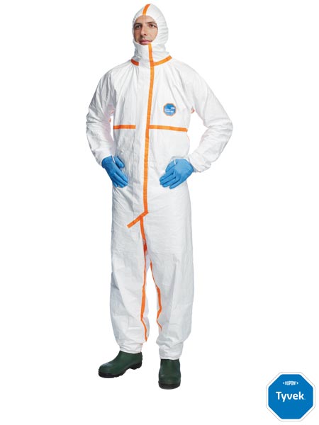 Lekki kombinezon ochronny TYVEK® 800 J wykonany z włókniny TYVEK®.- bariera ochronna zgodna z kategorią III odzieży ochronnej, typ 3b, 4b, 5b & 6b- dzięki zastosowaniu technologii nieprzepuszczalnego materiału, jest odporny na działanie strumienia substancji chemicznej na bazie wody pod ciśnieniem, a zarazem przepuszcza powietrze i zapewnia swobodę ruchów- stanowi również ochronę przed drobnymi, niebezpiecznymi cząstkami stałymi oraz olejem, zagrożeniami biologicznymi a także przed skażeniem cząstkami radioaktywnymi- zamek wykonany z włókniny TYVEK® zakryty samoprzylepną patką zapewnia optymalną ochronną- kaptur z gumką doskonale dopasowujący się do ruchów głowy i do maski twarzowej- patka na podbródku zwiększająca ochronę przed działaniem cieczy i dopasowanie do maski pełnotwarzowej- pomarańczowa taśma zabezpieczająca szwy, zapewnia dodatkową ochronę i zwiększa widoczność użytkownika- elastyczne mankiety rękawów i nogawek oraz gumka w talii zapewniają optymalne dopasowanie kombinezonu do ciała- posiada właściwości antyelektrostatyczne- sprawdza się przy sprzątaniu i czyszczeniu obiektów przemysłowych, przy instalacjach petrochemicznych, w zakładach wodociągowo-kanalizacyjnych oraz przy pracach konserwacyjnych- znajduje zastosowanie w pracach przy usuwaniu azbestu- spełnia wymagania norm EN14605, EN13982-1, EN13034, EN1149-5, EN1073-2 oraz EN14126