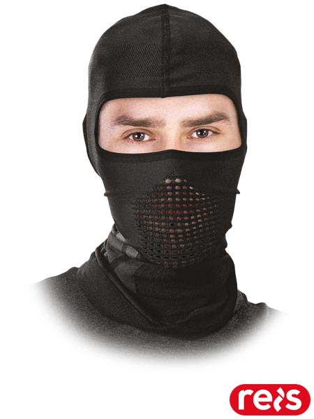 Kominiarka termoaktywna.- dzianina: 60% nylon, 32% polipropylen, 8% elastan- gramatura 210 g/m2- płaskie szwy zapewniają komfort noszenia- wykonana z elastycznego materiału, który dopasowuje się do kształtu głowy- pojedynczy otwór nie ogranicza pola widzenia- strefa wentylacji na wysokości ust zapewnia swobodny przepływ powietrza- przedłużony kołnierz chroni podbródek, szyję oraz dekolt przed wiatrem i chłodem- polecana do zastosowania w pracy oraz sportach zimowych i motocyklowych