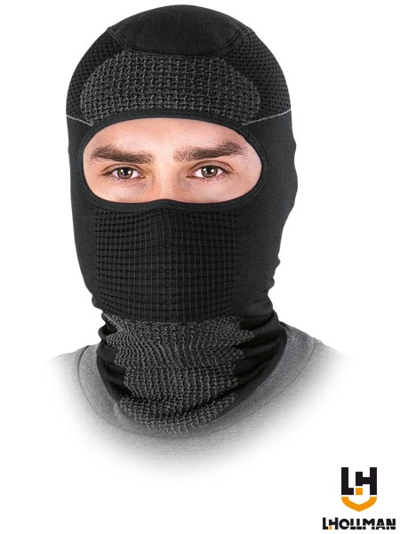 Kominiarka termoaktywna.- dzianina: 88% nylon, 5% poliester, 7% elastan- nylon zawarty w kominiarce pełni funkcję termoizolacyjną oraz jest odporny na bakterie i grzyby- dopasowuje się do kształtu głowy, zapewniając komfort użytkownika, a płaskie szwy eliminują uczucie ucisku- pojedynczy otwór nie ogranicza pola widzenia, nie przemieszcza się i zawsze dobrze przylega- dodatkowe obszycie otworu i dolnej krawędzi zapobiega przetarciom i nadmiernemu rozciąganiu materiału- posiada strefę wentylacji na wysokości ust, dzięki czemu zapewnia swobodny przepływ powietrza w miejscu o zwiększonej emisji wilgoci- chroni twarz zarówno przed chłodem i wiatrem- polecana do zastosowania w pracy oraz sportach zimowych i motocyklowych