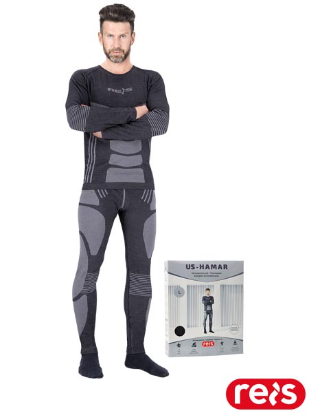 Bielizna termoaktywna, męska.- dzianina: 30% wełna merino, 28% bambusowe włókno wiskozowe, 27% poliester, 15% nylon- gramatura 250 g/m2- w zestawie koszulka z długim rękawem oraz kalesony- polecana do stosowania pod odzież jako dodatkowa izolacja przed zimnem- dokładnie dopasowuje się do kształtu ciała, zapewniając zarówno termoregulację, jak i ochronę mechaniczną, jednocześnie nie krępując ruchów- umieszczona w pudełku, które umożliwia wygodną prezentację na wystawie