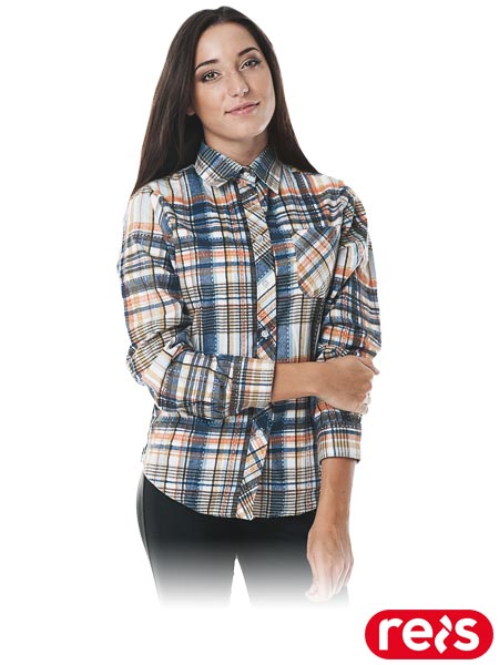 Koszula flanelowa w kratę, damska.- tkanina: 100% bawełna- gramatura 120 g/m2- zapinana na guziki- wykończona kołnierzykiem- długi rękaw- kieszeń na klatce piersiowej- ochroni ciało przed zadrapaniami podczas pracy w ogrodzie, a także ogrzeje w chłodniejszy dzień