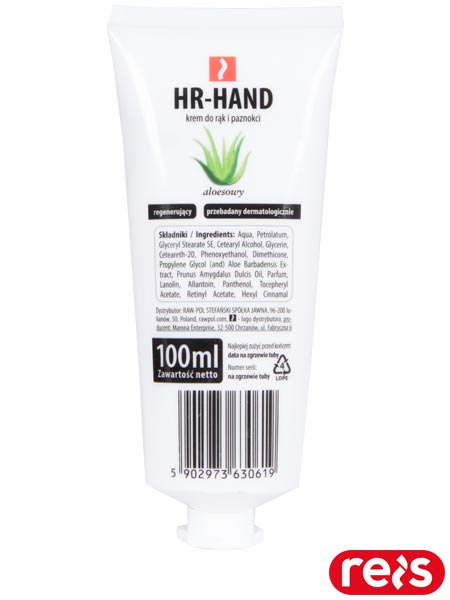 Krem do codziennej pielęgnacji rąk i paznokci.- witamina A+E działa antyrodnikowo, hamuje proces starzenia się skóry, poprawiając jej elastyczność oraz odmładza ją- prowitamina B5 działa nawilżająco, zmiękcza, uelastycznia skóra, łagodzi podrażnienia- allantoina działa regenerująco, stymuluje odnowę naskórka, wykazuje właściwości łagodzące i kojące oraz zmniejsza zaczerwienienia oraz wygładza i zmiękcza skórę- lanolina nawilża, wygładza, zmiękcza, zmniejsza szorstkość oraz wykazuje działanie regulujące gospodarkę wodną skóry- dostępne rodzaje: ALO – aloesowy, CYT - cytrynowy- pojemność: 100 ml