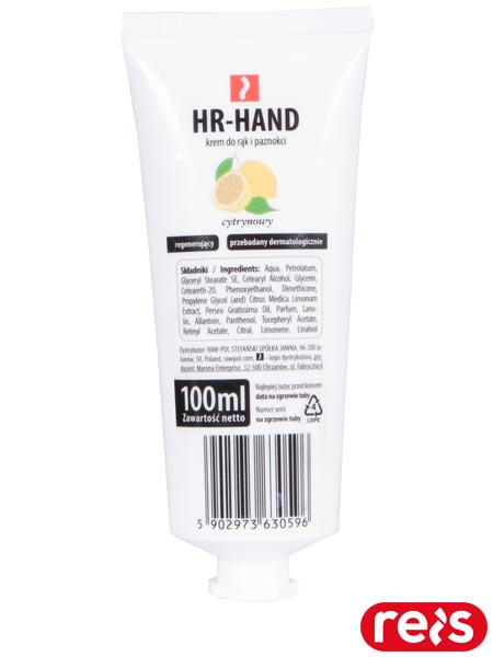 Krem do codziennej pielęgnacji rąk i paznokci.- witamina A+E działa antyrodnikowo, hamuje proces starzenia się skóry, poprawiając jej elastyczność oraz odmładza ją- prowitamina B5 działa nawilżająco, zmiękcza, uelastycznia skóra, łagodzi podrażnienia- allantoina działa regenerująco, stymuluje odnowę naskórka, wykazuje właściwości łagodzące i kojące oraz zmniejsza zaczerwienienia oraz wygładza i zmiękcza skórę- lanolina nawilża, wygładza, zmiękcza, zmniejsza szorstkość oraz wykazuje działanie regulujące gospodarkę wodną skóry- dostępne rodzaje: ALO – aloesowy, CYT - cytrynowy- pojemność: 100 ml