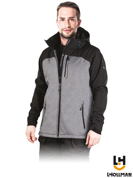 Kurtka ochronna, męska.- materiał główny: trójwarstwowa szara tkanina softshell 100% poliester twill, membrana TPU, polar 100% poliester o gramaturze 280 g/m2- czarne wstawki z trójwarstwowej tkaniny softshell o splocie twill: 96% poliester, 4% elastan, membrana TPU, polar 100% poliester o gramaturze 280 g/m2- materiał SOFTSHELL - chroni przed deszczem oraz wiatrem, a jednocześnie pozwala skórze oddychać- zapinana na zamek błyskawiczny- kołnierz w formie stójki- odsuwany kaptur z siateczkową podszewką- dwie kieszenie w dolnej części oraz jedna na klatce piersiowej zapinane na suwak- rękawy zakończone na rzep, umożliwiające regulację ich szerokości- dół kurtki z możliwością ściągnięcia za pomocą troczków- idealnie sprawdza się nie tylko podczas pracy, ale również uprawiania sportów