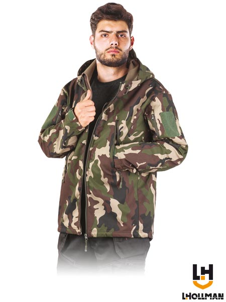 Kurtka ochronna, męska.- trójwarstwowa tkanina softshell: 96% poliester, 4% elastan, membrana TPU, polar 100% poliester- gramatura 280 g/m2- materiał SOFTSHELL - chroni przed deszczem oraz wiatrem, a jednocześnie pozwala skórze oddychać- zapinana na zamek błyskawiczny- kaptur z daszkiem, ściągany na troczki z dodatkową możliwością zwinięcia i zapięcia na rzep- dwie kieszenie w dolnej części oraz trzy na ramionach, zapinane na suwak- kieszeń w dolnej części pleców- rękawy zakończone na rzep, umożliwiające regulację ich szerokości- rozsuwana pod pachami, dając możliwość wentylacji- na ramionach rzepy przeznaczone na różnego typu emblematy i odznaczenia- dodatkowe wzmocnienia materiałowe na łokciach