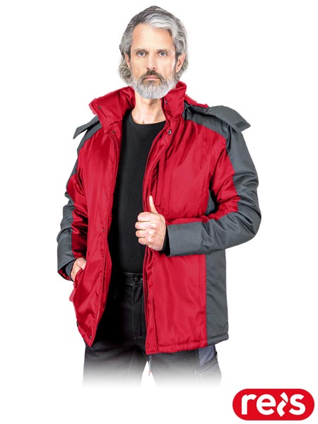 Kurtka ochronna ocieplana, męska.- materiał główny: tkanina 100% poliester Oxford 200D powlekany poliuretanem o gramaturze 120 g/m2- kontrastowe wstawki: tkanina 100% poliester Oxford 200D powlekany poliuretanem o gramaturze 120 g/m2- wyściółka 100% poliester o gramaturze 280 g/m2- pikowana podszewka 100% poliester o gramaturze 60 g/m2- zapinana na zamek błyskawiczny z dodatkowym zapięciem na napy- kołnierz w formie stójki- odsuwany kaptur z dodatkowym zapięciem na rzep dla lepszej ochrony głowy przed chłodem- dwie kieszenie w dolnej części oraz jedna na klatce piersiowej zapinane na suwak- kieszeń wewnętrzna zapinana na rzep- rękawy zakończone ściągaczem- fason: REGULAR