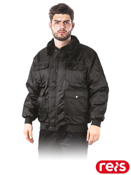 Kurtka ocieplana. Idealna dla firm ochroniarskich, z powłoką zabezpieczającą przed przesiąknięciem.- powłoka 100% poliester na PCV- wyściółka 100% poliester o gramaturze 200 g/m2- podszewka 100% poliester typu tafta 190T- zapinana na suwak z dodatkowymi zapięciami na napy- ocieplana pianką, od wewnątrz pikowana- dół kurtki oraz rękawy zakończone ściągaczem- kołnierz wykonany z kożuszka- siedmiokieszeniowa, w tym pięć z nich zapinane na napy i jedna, na telefon komórkowy, zapinana na rzep