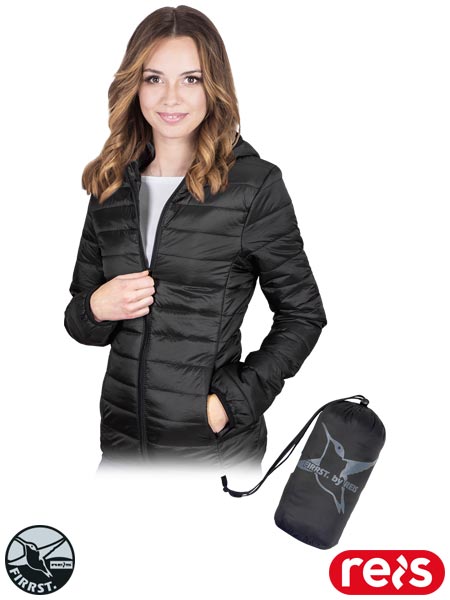 Pikowana kurtka ocieplana, damska.- tkanina: 100% nylon 20D o gramaturze 50 g/m2- podszewka 100% poliester o gramaturze 140 g/m2- wyściółka 100% poliester tafta 210T o gramaturze 60 g/m2- zapinana na zamek błyskawiczny- kaptur- dwie kieszenie w dolnej części zapinane na suwak- kaptur, rękawy i dół kurtki wykończone elastyczną lamówką- pakowana w worek w kolorze kurtki- uniwersalny wygląd sprawia, że znajduje ona zastosowanie zarówno w pracy jak i w życiu codziennym- fason: SLIM