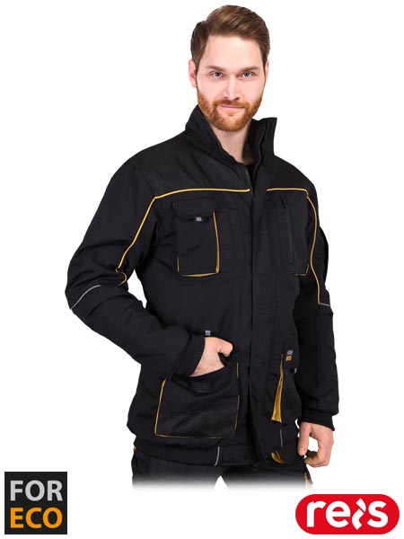 Kurtka ochronna ocieplana, męska.- tkanina o splocie canvas: 80% poliester, 20% bawełna o gramaturze 260 g/m2- wstawki: tkanina 100% poliester 600D Oxford o gramaturze 200 g/m2- wyściółka 100% poliester o gramaturze 180 g/m2- pikowana podszewka 100% poliester tafeta 190T o gramaturze 85 g/m2- zapinana na dwustronny zamek błyskawiczny z dodatkowym zapięciem na rzepy- kołnierz w formie stójki- dwie kieszenie w dolnej części oraz dwie na klatce piersiowej z dodatkową wąską kieszonką na przybory np. długopis- na lewym rękawie kieszeń zapinana na suwak- kieszeń wewnętrzna- rękawy oraz dół kurtki zakończone ściągaczem- odblaskowe elementy- testowana na zawartość szkodliwych dla zdrowia substancji zgodnie ze standardami OEKO-TEX® Standard 100