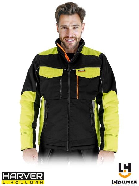 Kurtka ochronna ocieplana, męska.- materiał główny: tkanina 80% poliester 20% bawełna o gramaturze 240 g/m2- kontrastowe wstawki: tkanina 80% poliester, 20% bawełna o gramaturze 240 g/m2- wyściółka 100% poliester o gramaturze 150 g/m2- pikowana podszewka polarowa 100% poliester o gramaturze 150g/m2 (tułów) oraz 100% poliester tafta 190T o gramaturze 60 g/m2 (rękawy)- zapinana na zamek błyskawiczny- kołnierz w formie stójki ocieplany polarem- dwie kieszenie w dolnej części zapinane na suwak oraz dwie podwójne na klatce piersiowej- dwie kieszenie wewnętrzne, w tym jedna zapinana na suwak, zaś druga na rzep- rękawy zakończone od wewnątrz ściągaczem- dół bluzy z możliwością regulacji za pomocą nap- odblaskowe elementy- fason: REGULAR