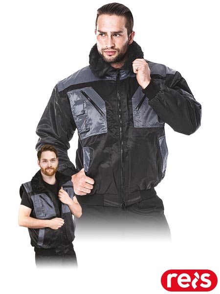 Kurtka ochronna ocieplana 4w1, męska.- tkanina: 60% bawełna, 40% poliester o gramaturze 240 g/m2- podszewka 100% poliester o gramaturze 50 g/m2- odpinana futerkowa podpinka na suwak 100% poliester o gramaturze 440 g/m2- w rękawach wyściółka 100% poliester o gramaturze 120 g/m2- zapinana na zamek błyskawiczny- odpinane rękawy zwiększają funkcjonalność kurtki- kołnierzyk w formie stójki ocieplany futerkiem z dodatkowym zapięciem na rzep- dwie kieszenie w dolnej części oraz dwie kieszenie w górnej części w tym jedna podwójna na telefon- dodatkowa kieszeń od wewnątrz- na lewym rękawie kieszeń zapinana na suwak oraz trzy wąskie kieszonki na przybory- dół kurtki oraz rękawy zakończone ściągaczem- doskonała zarówno do pracy, jak i na co dzień