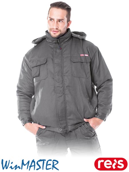 Kurtka ochronna ocieplana, męska.- tkanina: 65% poliester, 35% bawełna o gramaturze 180 g/m2- wyściółka 100% poliester o gramaturze 180 g/m2- pikowana podszewka 100% poliester tafta 190T o gramaturze 50 g/m2- zapinana na zamek błyskawiczny z dodatkowym zapięciem na guziki- kołnierz w formie stójki- odpinany kaptur ściągany na troczki- dwie kieszenie w dolnej części oraz trzy na klatce piersiowej, w tym jedna na telefon komórkowy zapinane na rzep- rękawy zakończone zapięciem na guzik- dół kurtki zakończony ściągaczem w bocznych partiach
