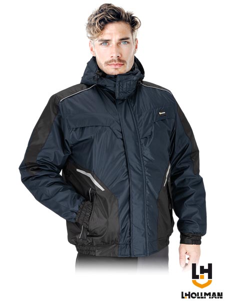 Kurtka ochronna ocieplana, męska.- tkanina: 100% poliester powlekany poliuretanem o gramaturze 150 g/m2- wyściółka 100% poliester o gramaturze 180 g/m2- podszewka górna część polar (100% poliester) o gramaturze 280 g/m2, dolna część oraz rękawy pikowany 100% poliester tafeta 190T o gramaturze 85 g/m2- zapinana za zamek błyskawiczny z dodatkowym zapięciem na rzepy- kołnierz w formie stójki- odsuwany kaptur ściągany na troczki z dodatkowym zapięciem na rzep dla lepszej ochrony głowy przed chłodem- dwie kieszenie w dolnej części oraz dwie na klatce piersiowej zapinane na suwak- kieszeń wewnętrzna zapinana na rzep- rękawy zakończone ściągaczem w przedniej partii, umożliwiającym regulację ich szerokości- dół kurtki zakończony ściągaczem w bocznych partiach- odblaskowe elementy