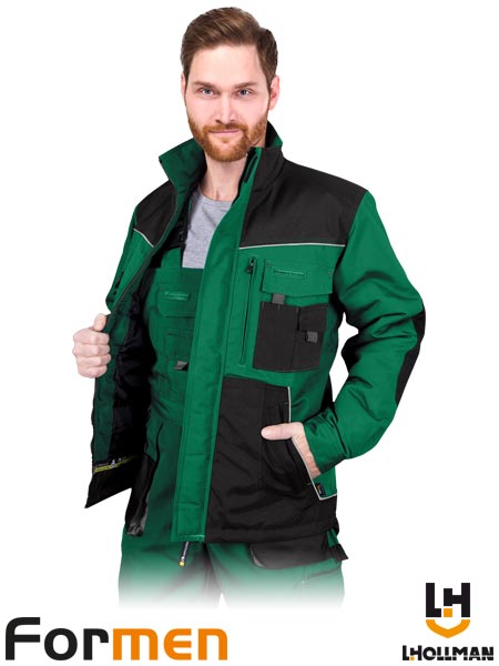 Kurtka ochronna ocieplana FORMEN, tkana.- powłoka 65% poliester, 35% bawełna o gramaturze 270 g/m2- wyściółka 100% poliester o gramaturze 220 g/m2- podszewka 100% poliester typu tafta 190T o gramaturze 50 g/m2- zapinana na suwak z dodatkowym zapięciem na rzepy- trzy kieszenie na klatce piersiowej, w tym jedna na rzep, jedna na suwak i jedna na telefon, dwie wąskie kieszonki na przybory np. długopis oraz dwie dolne- na ramionach, łokciach i w dolnych partiach kurtki wzmocnienie z czarnego materiału, co zwiększa wytrzymałość kurtki na przetarcia- przedłużany tył- staranne wykonanie oraz zwiększona wytrzymałość zapewniają wysoki komfort użytkowania- certyfikat OEKO-TEX® Standard 100 (testy na zawartość szkodliwych dla zdrowia substancji)