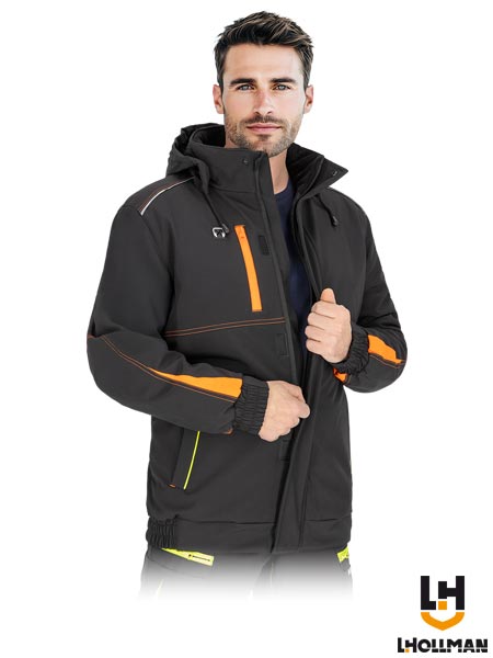 Kurtka ochronna ocieplana, męska.- trójwarstwowa tkanina softshell: 94% poliester, 6% elastan, membrana TPU, polar 100% poliester o gramaturze 310 g/m2- wyściółka 100% poliester o gramaturze 120 g/m2- pikowana podszewka 100% poliester tafta 190T o gramaturze 50 g/m2- materiał SOFTSHELL - chroni przed deszczem oraz wiatrem, a jednocześnie pozwala skórze oddychać- zapinana na zamek błyskawiczny z dodatkowym zapięciem na rzepy oraz napy- kołnierz w formie stójki- kaptur ściągany na troczki z możliwością zwinięcia i schowania w kołnierzu- dwie kieszenie w dolnej części oraz jedna na klatce piersiowej zapinane na suwak- trzy kieszenie wewnętrzne zapinane na rzep- otwór na słuchawki- rękawy oraz dół kurtki zakończone ściągaczem w bocznych partiach- odblaskowe elementy- fason: REGULAR