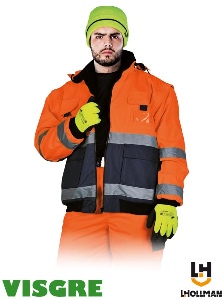 Kurtka ochronna ocieplana 2w1, męska.- tkanina: 100% poliester Oxford 300D powlekany poliuretanem o gramaturze 180 g/m2- polarowa podszewka 100% poliester o gramaturze 280 g/m2- zapinana na zamek błyskawiczny- kołnierz w formie stójki ocieplany polarem- odsuwany kaptur ściągany na troczki z możliwością zwinięcia w kołnierz i zapięcia na rzep- dwie podwójne kieszenie w dolnej części, dwie na klatce piersiowej oraz dodatkowa kieszeń na identyfikator- trzy kieszenie wewnętrzne, w tym jedna zapinana na rzep- odpinane rękawy na suwak zakończone ściągaczem- dół kurtki zakończony ściągaczem- tkanina we fluorescencyjnym kolorze i pasy odblaskowe zwiększające widoczność- idealna dla drogowców i innych służb porządkowych