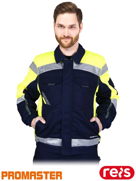 Kurtka ochronna ocieplana, męska.- tkanina o splocie twill: 65% poliester, 35% bawełna o gramaturze 300 g/m2- wyściółka 100% poliester o gramaturze 180 g/m2- podszewka pikowana 100% poliester tafta 190T o gramaturze 85 g/m2- zapinana na zamek błyskawiczny z dodatkowym zapięciem na rzepy- dwie kieszenie w dolnej części oraz dwie na klatce piersiowej zapinane na rzep- na lewym rękawie kieszeń zapinana na rzep z dodatkowymi przegródkami- kieszeń wewnętrzna- rękawy zakończone ściągaczem- dół kurtki zakończony ściągaczem w bocznych partiach- pasy odblaskowe zwiększające widoczność- fason: REGULAR