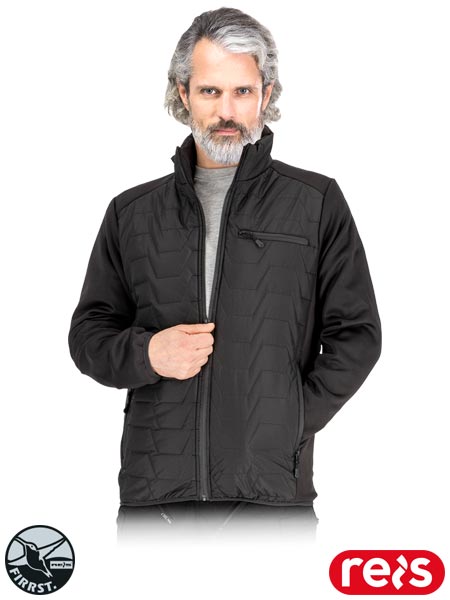 Pikowana kurtka ochronna ocieplana, męska.- materiał główny: tkanina 100% poliester o gramaturze 83 g/m2- wstawki: 100% poliester o gramaturze 310 g/m2- wyściółka 100% poliester o gramaturze 160 g/m2- podszewka 100% poliester o gramaturze 60 g/m2- zapinana na zamek błyskawiczny- kołnierz w formie stójki- dwie kieszenie w dolnej części oraz jedna na klatce piersiowej zapinane na suwak- kieszeń wewnętrzna- rękawy oraz dół kurtki wykończone elastyczną lamówką