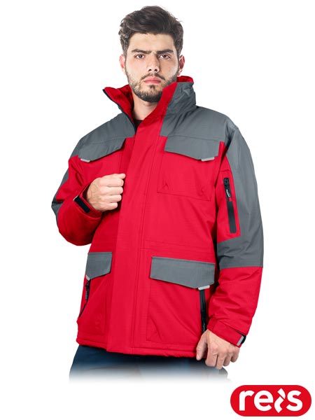 Kurtka zimowa wykonana z tkaniny typu rip-stop.- powłoka 100% poliester powlekany PCV o gramaturze 210 g/m2- wyściółka 100% poliester o gramaturze 160 g/m2- podszewka 100% poliester typu tafta 190T o gramaturze 55 g/m2- tkanina typu rip-stop - zabezpiecza przed rozdarciem w momencie zaczepienia o wystający przedmiot- zapinana na suwak z dodatkowym zapięciem na rzepy- kaptur chowany w kołnierzu- od wewnątrz pikowana, dzięki czemu zabezpiecza ocieplinę przed przesuwaniem się- dwie podwójne kieszenie w dolnej części oraz dwie na klatce piersiowej, z czego cztery zapinane są na rzep- na lewym rękawie kieszeń zapinana na suwak- dodatkowa kieszeń od wewnętrznej strony- rękawy ze ściągaczem i dodatkowym zapięciem na rzep- od wewnątrz gumka do ściągnięcia kurtki w pasie i na dole, dzięki czemu można ją dopasować do sylwetki i zabezpieczyć przed dostaniem się wiatru