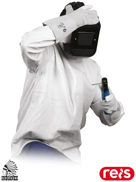 Kurtka spawalnicza skórzana.- wykonana z wysokiej jakości skóry bydlęcej licowej pokrytej z jednej strony powłoką poliuretanową- wymiary: szer. ok 65 cm, dł. ok. 80 cm- zapinana na jednolity długi rzep- wykończona pod szyją stójką, która od wewnątrz obszyta jest delikatną tkaniną, dzięki czemu nie obciera i nie podrażnia szyi- spełnia wymagania norm EN11611 i EN13688