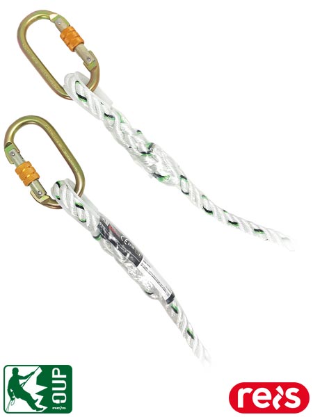 Linka bezpieczeństwa do pracy w podparciu.- długość: 1.5 m- końcówki liny splecione i pokryte ochronnym rękawem z polietylenu- nasada odporna na ścieranie- po obu stronach liny karabińczyk- trójżyłowa lina poliamidowa o średnicy 12 mm wyposażona we wskaźnik zielony i czarny sygnalizujący stopień zużycia materiału, wytrzymała na rozerwanie 25 kN, zgodna z ISO 1140- spełnia wymagania normy EN354
