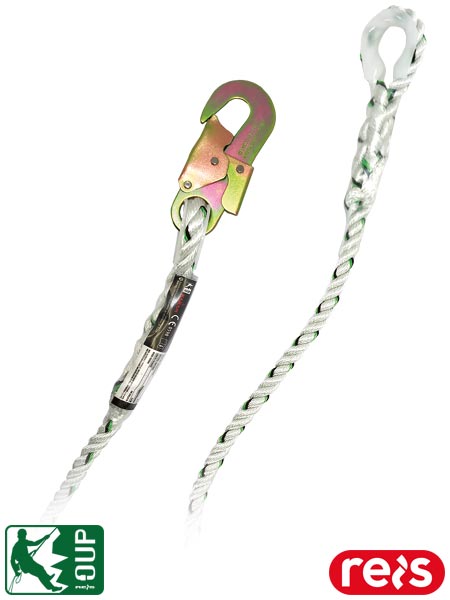 Linka bezpieczeństwa do pracy w podparciu.- długość: 1.5 m- końcówki liny splecione i pokryte ochronnym rękawem z polietylenu- nasada odporna na ścieranie- po jednej stronie pętla z nasadą a po drugiej stronie stalowy hak zatrzaskowy- trójżyłowa lina poliamidowa o średnicy 12 mm wyposażona w wskaźnik zielony i czarny sygnalizujący stopień zużycia materiału, wytrzymała na rozerwanie 25 kN, zgodna z ISO 1140- spełnia wymagania normy EN354