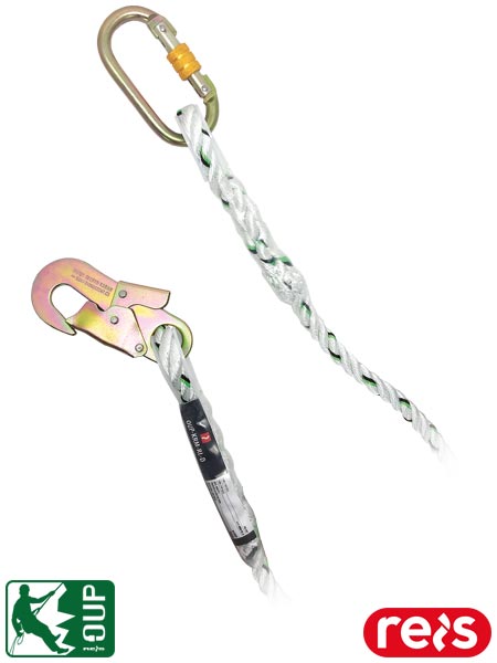 Linka bezpieczeństwa do pracy w podparciu.- długość: 1.5 m- końcówki liny splecione i pokryte ochronnym rękawem z polietylenu- nasada odporna na ścieranie- po jednej stronie karabińczyk a po drugiej stronie stalowy hak zatrzaskowy- trójżyłowa lina poliamidowa o średnicy 12 mm wyposażona w wskaźnik zielony i czarny sygnalizujący stopień zużycia materiału, wytrzymała na rozerwanie 25 kN, zgodna z ISO 1140- spełnia wymagania normy EN354